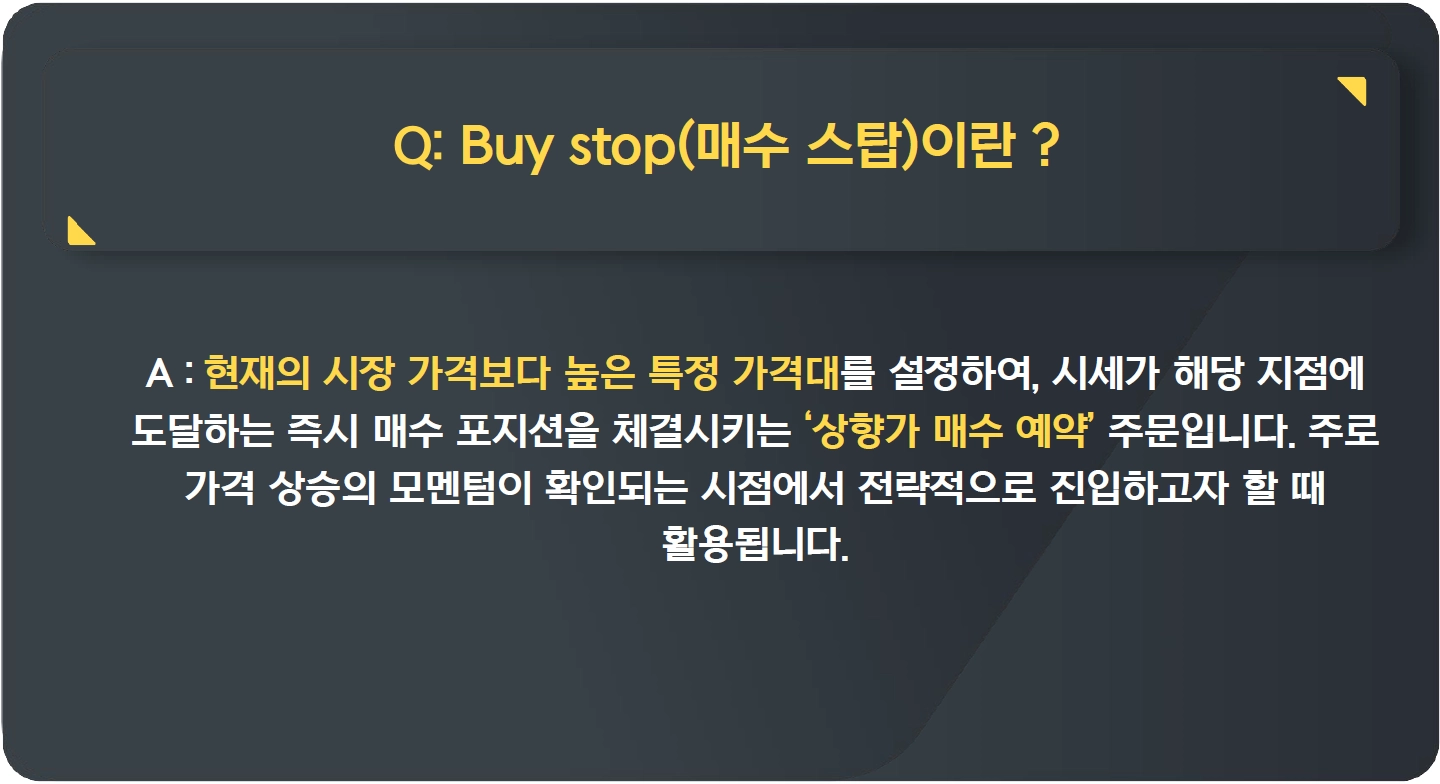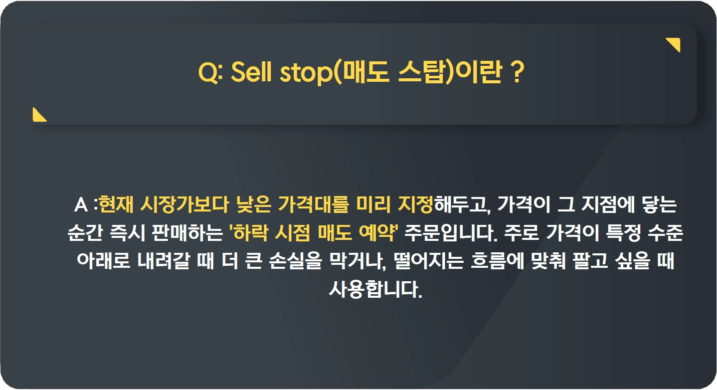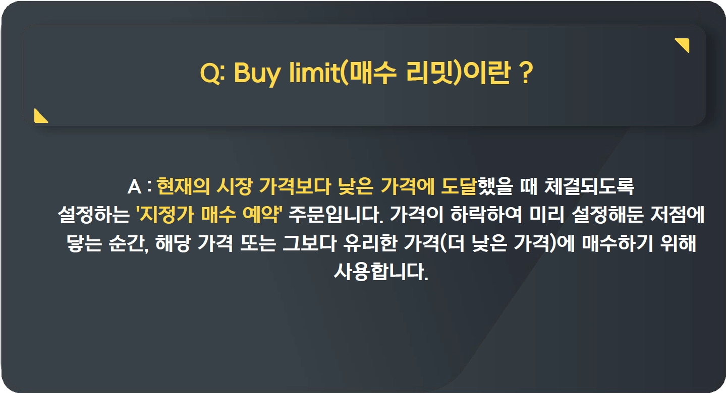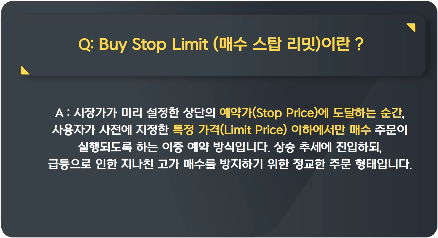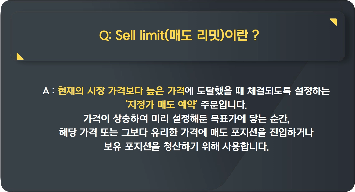 Q : 지정가 주문(예약주문)중 매수매도 리밋/스탑 중 어떤 것을 사용해야 하나요?