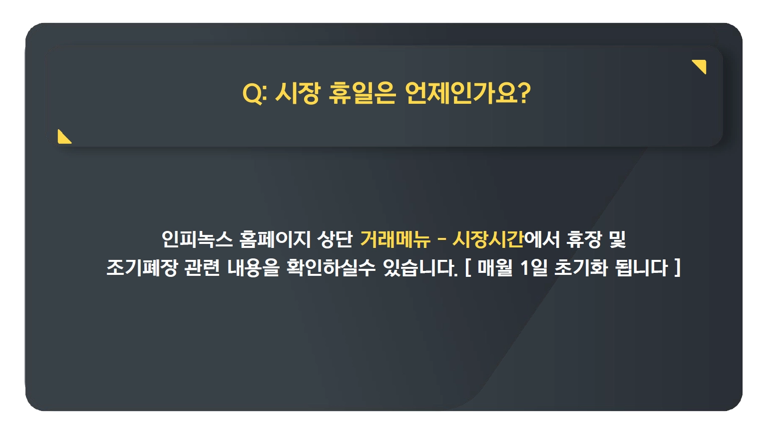 Q : 시장 휴일은 언제인가요?