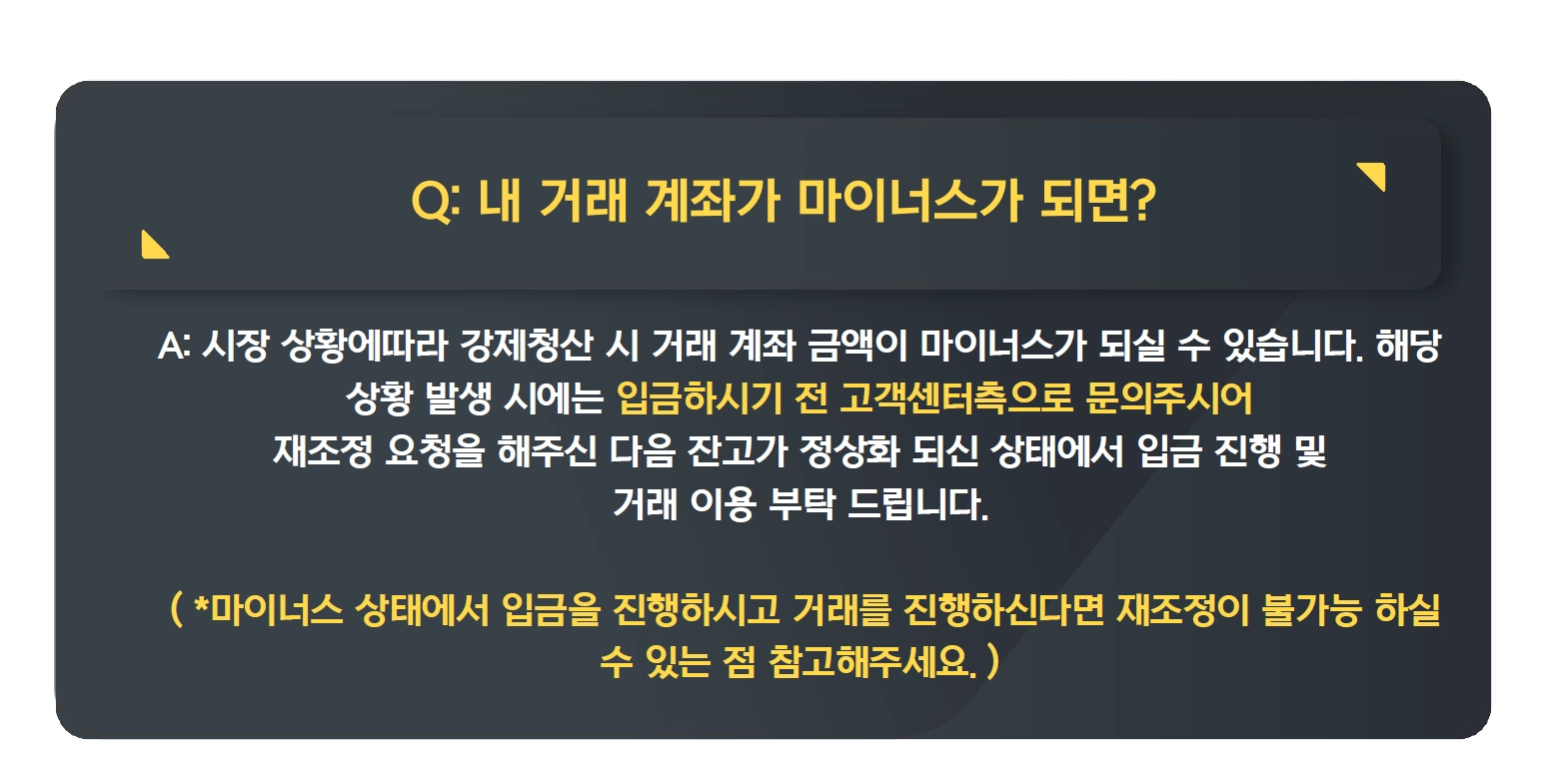Q : 내 거래계좌가 마이너스가 되면 어떻게 하나요?