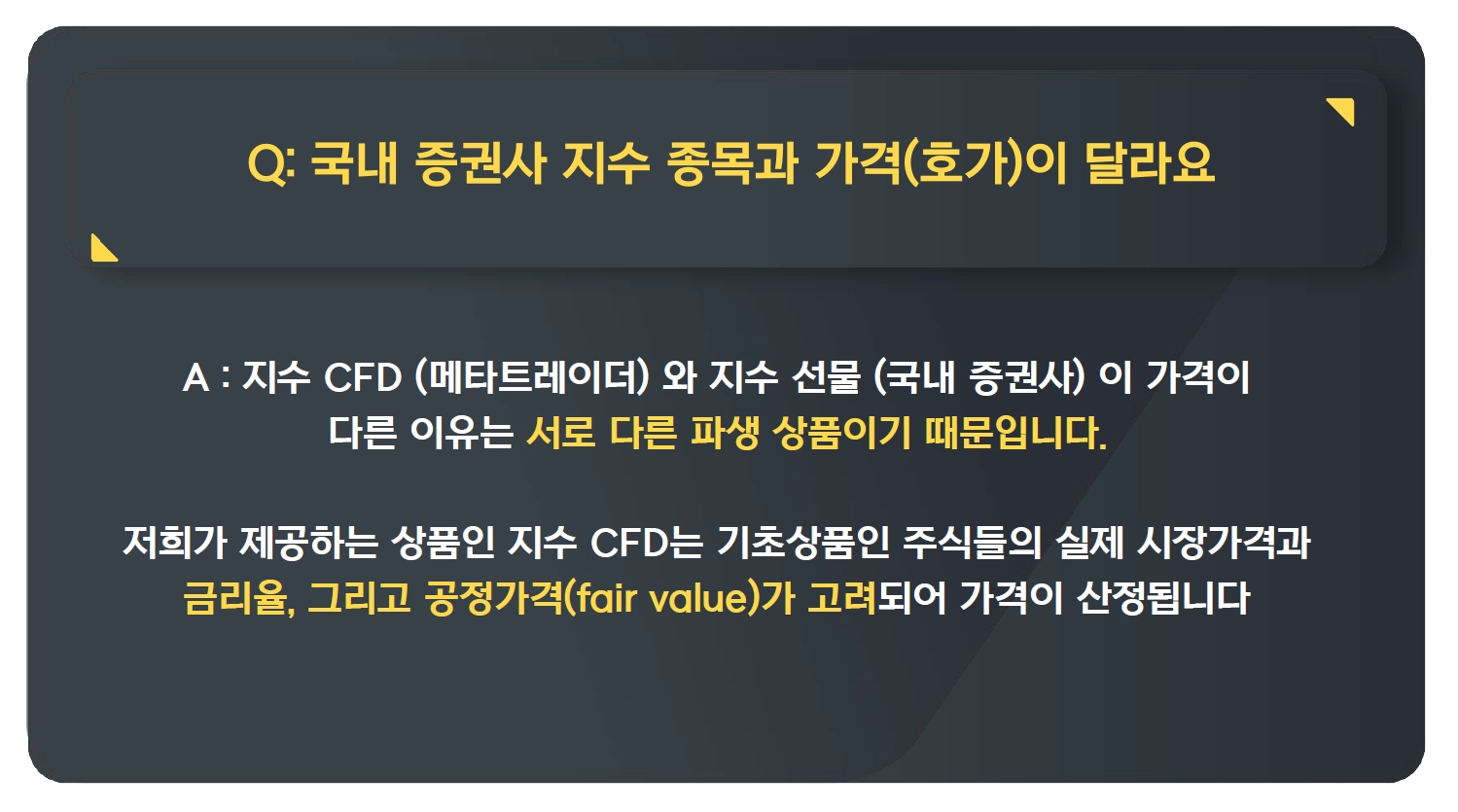Q : 국내 증권사 지수 종목과 가격(호가)이 달라요.