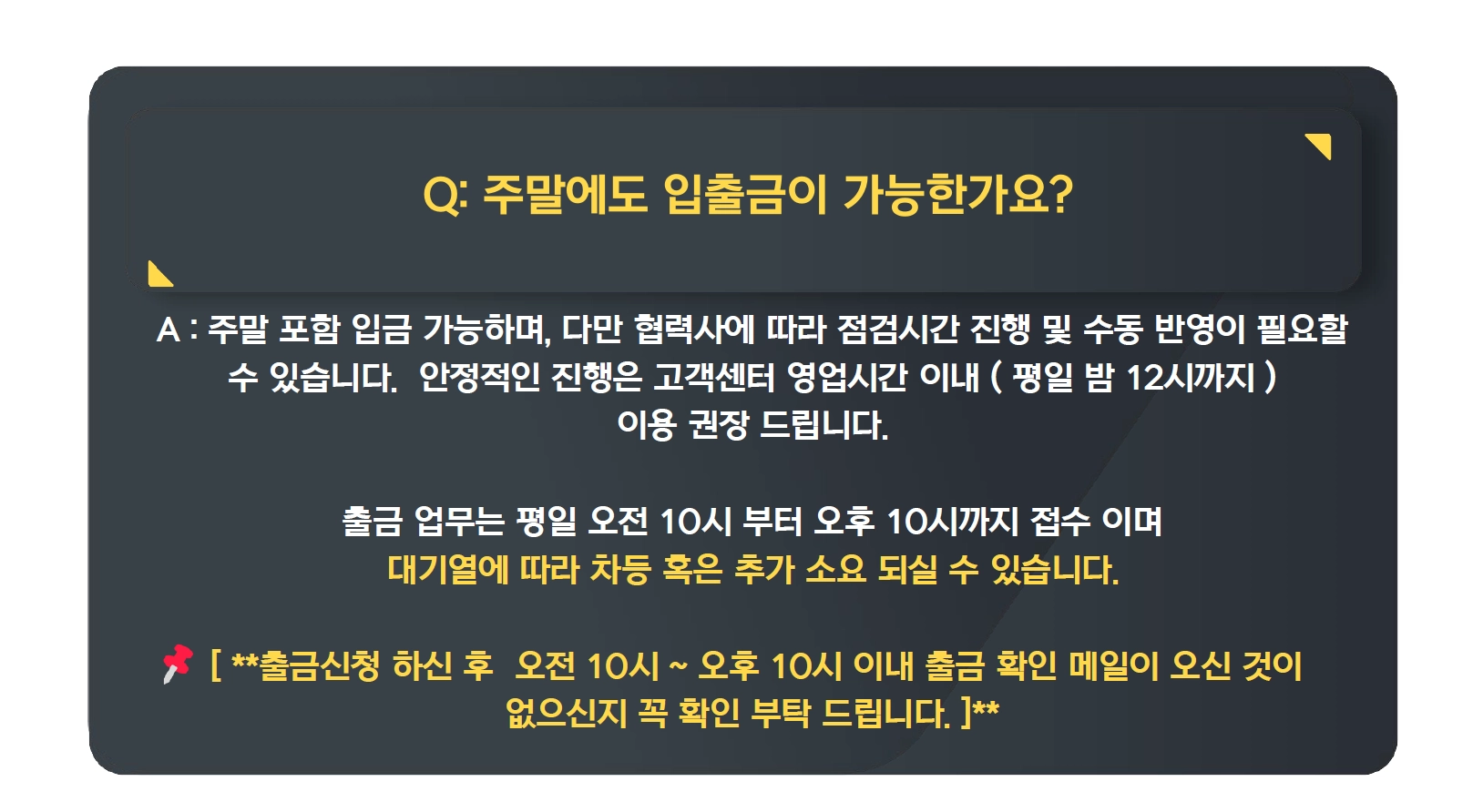 Q : 주말에도 입출금이 가능한가요?
