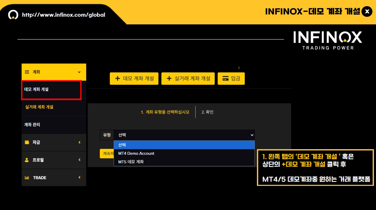 \color{#FFD321}\rule{365px}{10px} 데모 계좌 개설 방법