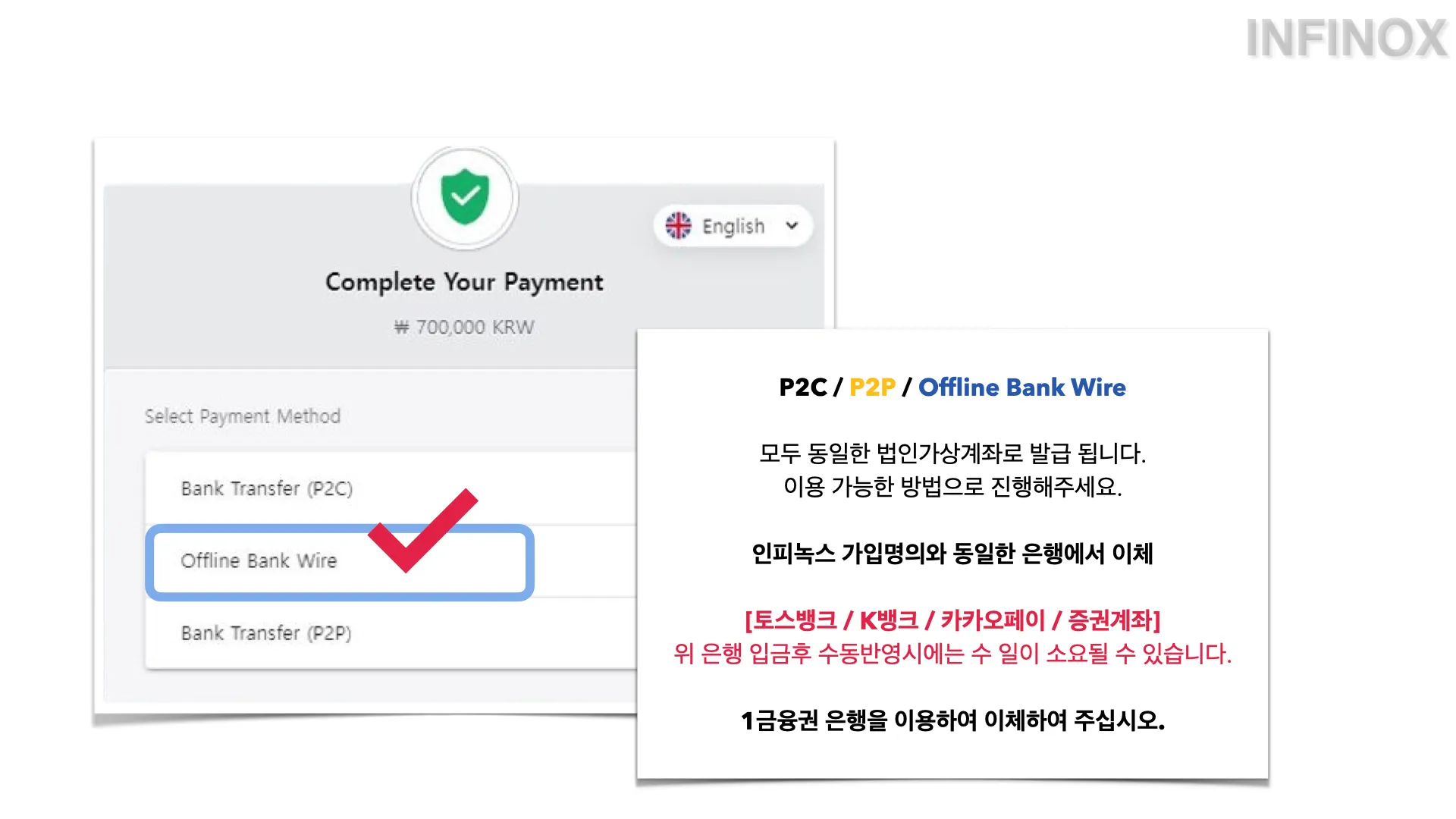 (3,000,000 μ λ―Έλ§μΌμ Offline Bank Wire λ‘ μ§νλ©λλ€.)