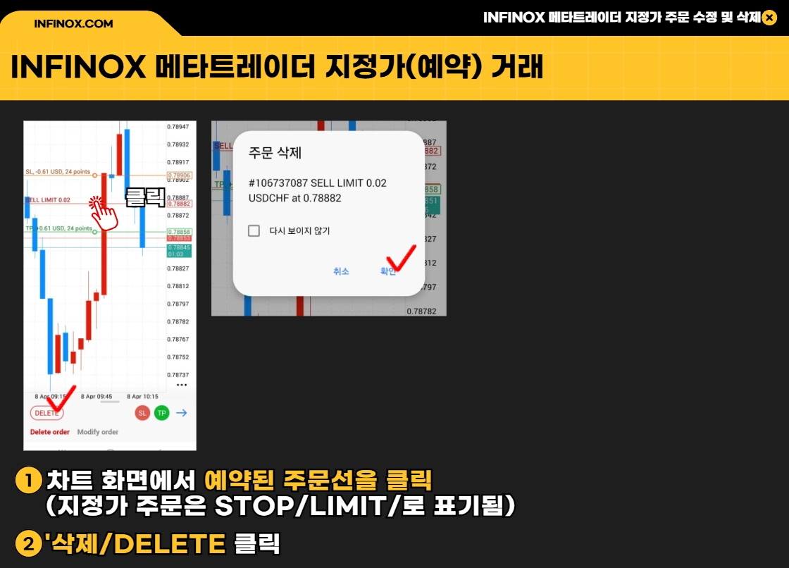 차트 화면에 표시된 예약 주문선을 터치하신 후,