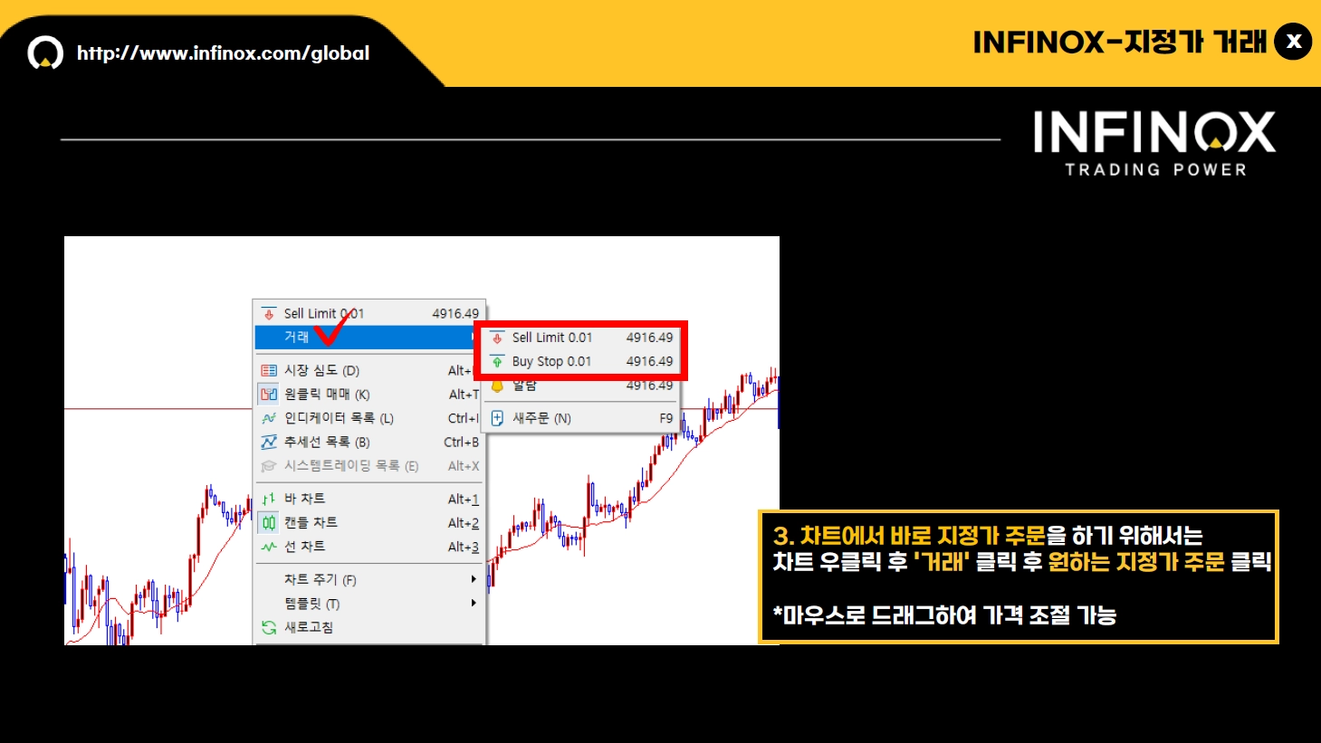 지정가 주문을 차트에서 바로 진행하시려면 아래 순서대로 진행해주세요.